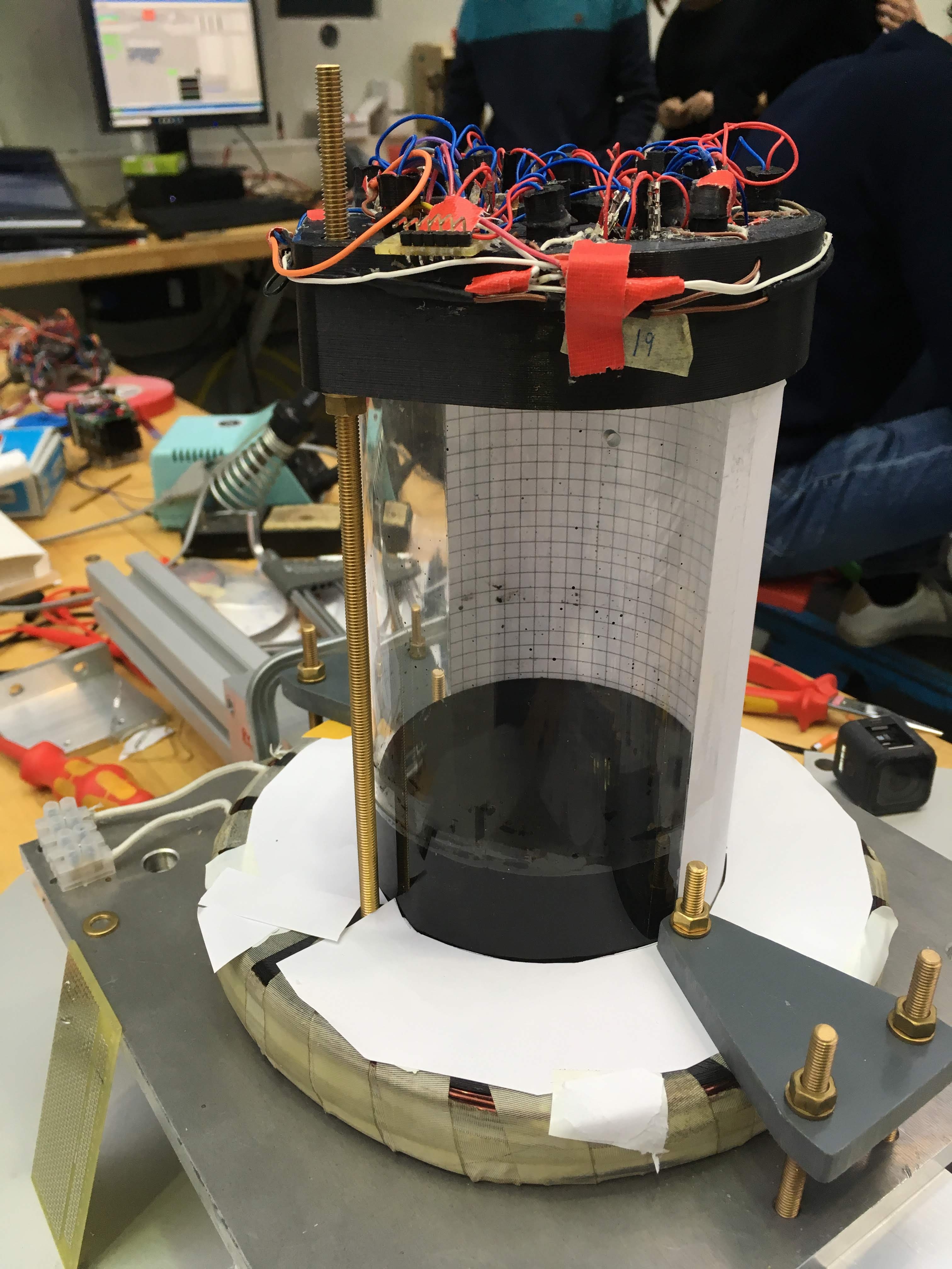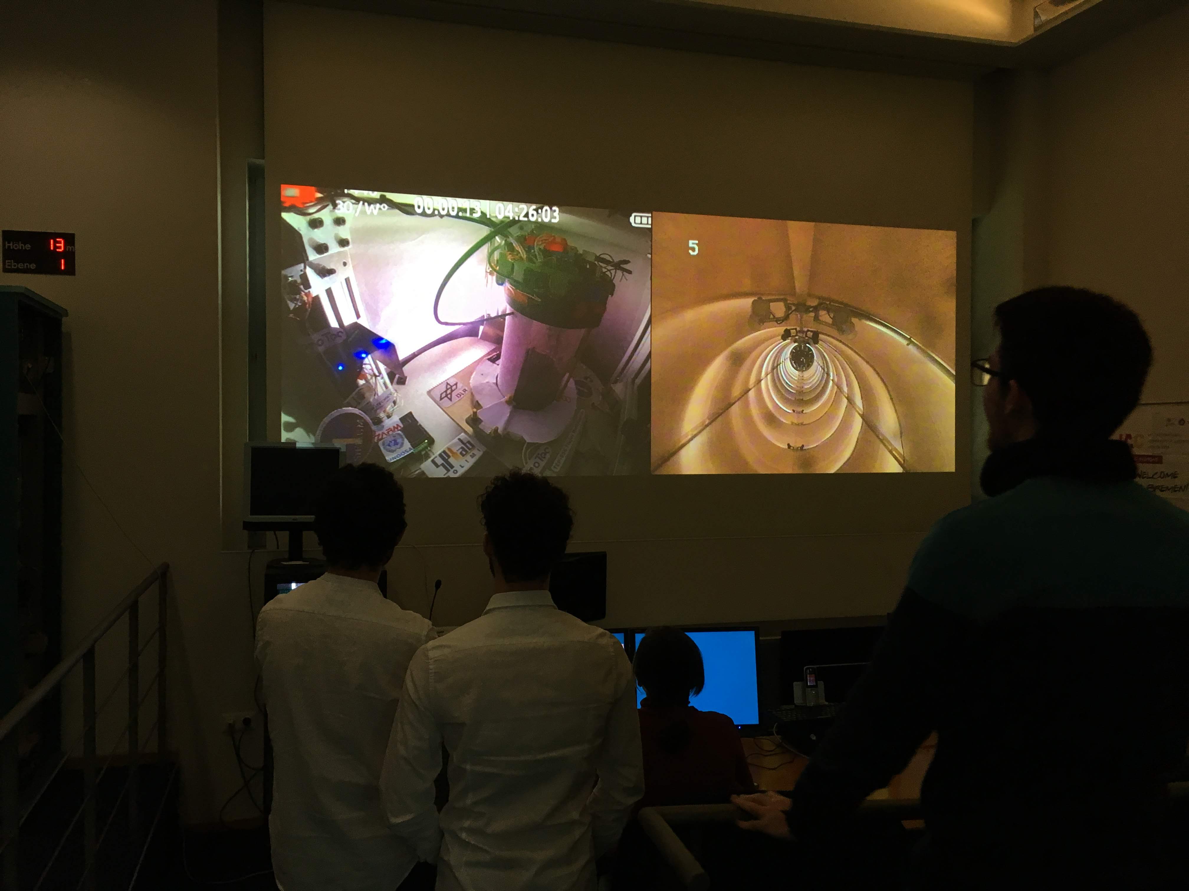 During the week preceding the drop campaign, the team integrated the experimental setup in the drop tower capsule after facing several challenges. The first of them was ensuring that the electronic connections were reliable. Since during the catapult drop the assembly is subjected to an acceleration 50 times larger than the one over Earth, it was key to reinforce the different subsystems in order to avoid fatal disconnections. A second challenge was to supply a stable current intensity to the high-power magnetic coils. Fortunately, the ZARM engineers were able to find and purchase a suitable power source. Finally, it was key to ensure that the capsule was well-balance; that is, that the centre of gravity of the capsule remained in a small circle surrounding its symmetry axis. It was the very first time that an experiment involved an internal lateral displacement, and specific safety measures had to be implemented. Nobody wanted to crash a 500 kg capsule at the bottom of the tower… but the efforts from everyone had a great result: the drops were perfectly safe!