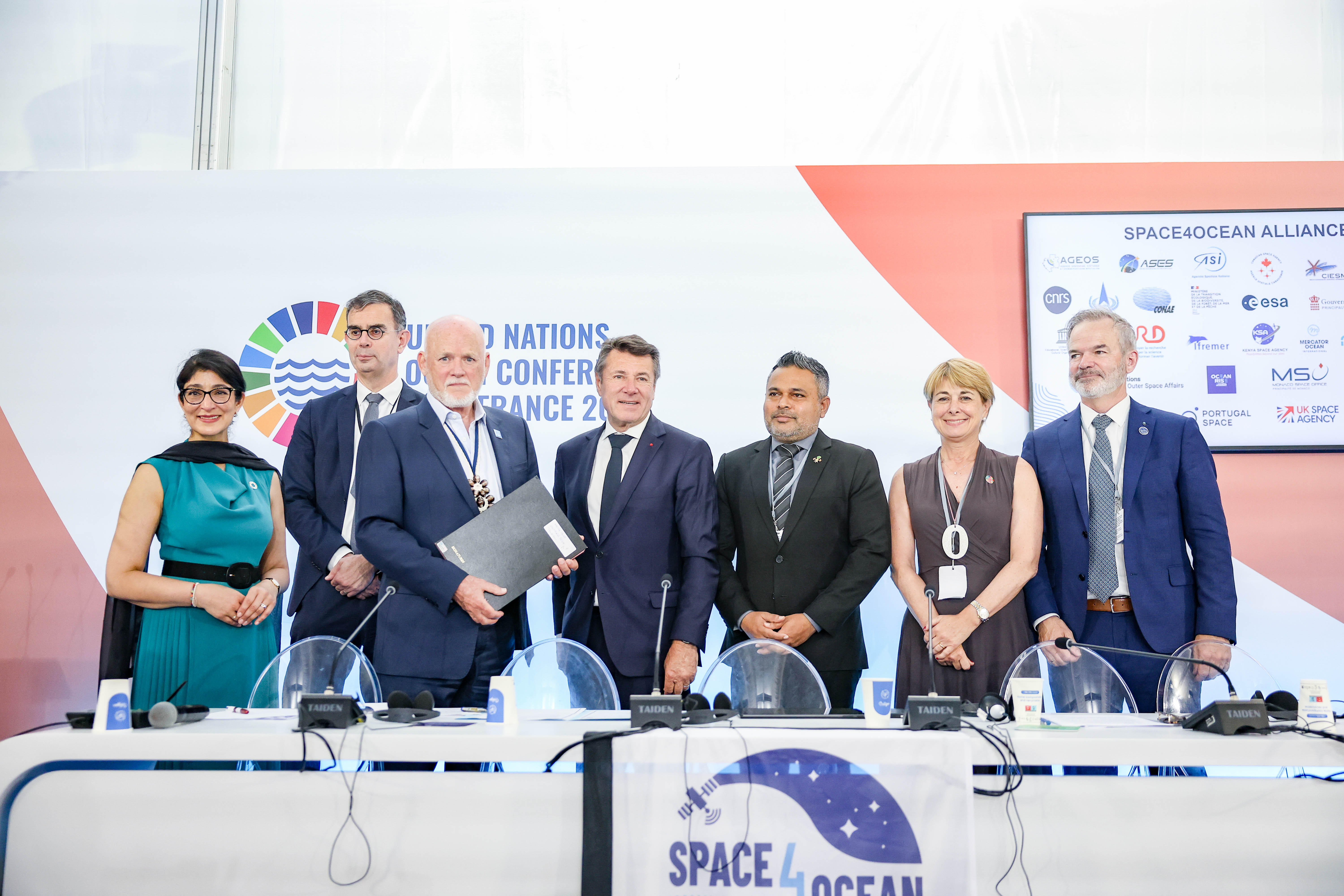 The Space4Ocean Alliance was officially launched at the third United Nations Ocean Conference (UNOC3) in June 2025 during a dedicated side event organized by UNOOSA. This high-level side event gathered signatory ministers and heads of space agencies and culminated in the official handover of the signed Declaration of Interest to M. Peter Thomson, UN Secretary General's Special Envoy for Ocean, which sealed the official kick-off of the Alliance. Read more